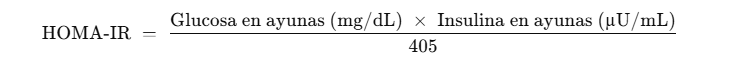 - Correlación clínica: El HOMA‑IR es un método sencillo, reproducible y de bajo coste, ampliamente usado en investigación y práctica clínica para detectar resistencia temprana.